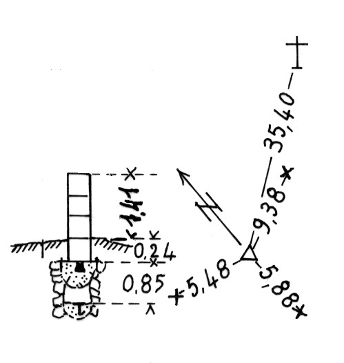 | Materializzazione | Segnale sull'estremità Sud della cresta rocciosa del monte. Pilastrino in ferro con sottostanti centrini coassiali. Riferimenti: tre croci incise su roccia e una croce in traliccio in ferro (segnale di fuori centro) |