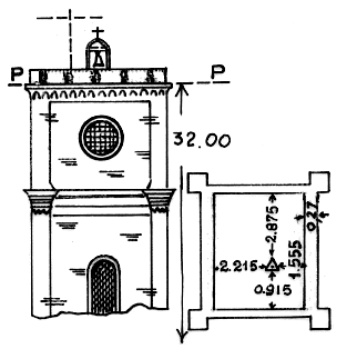 Segnale sul terrazzo del campanile della chiesa parrocchiale (S. Maria Maggiore). Centrino.