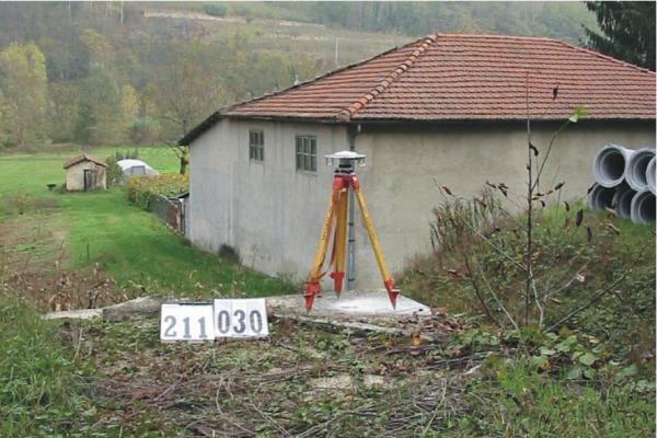 Centrino inox infisso nelle vicinanze dello spigolo sud est della platea in calcestruzzo al km 4+700 della S.P. 439, in località Case alle Ghiaie