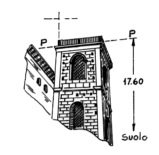 Segnale sullo spigolo nord-ovest del terrazzo del campanile della chiesa dedicata a S. Berbara. Centrino.