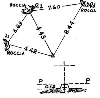 | Materializzazione | Segnale sul cocuzzolo roccioso, a nord della punta alberata più alta del monte. Centrino di superficie cementato in roccia. Riferimenti: Tre come da pianta. |