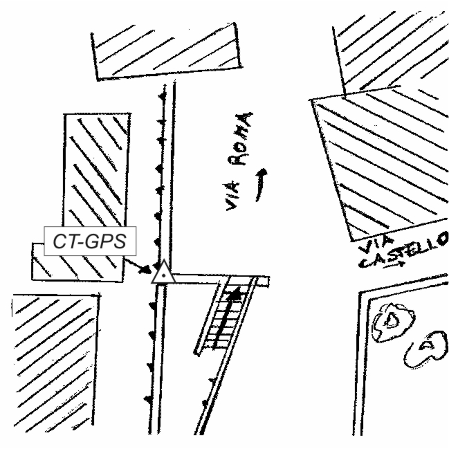| materializzazione | Centrino metallico posta su un muro reggispinta in calcestruzzo dello spiazzo del parcheggio di via Roma e via Castello. |