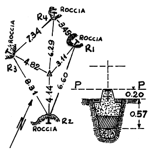 | Materializzazione | Segnale sul cocuzzolo roccioso. Centrini di superficie e di fondo. Riferimenti: Quattro come da pianta. |