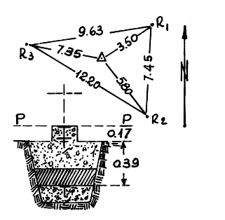 Segnale sopra un cocuzzolo situato in Regione Persico a nord-ovest di Martirano. Centrini di superficie e di fondo. Riferimenti:Tre come da pianta.