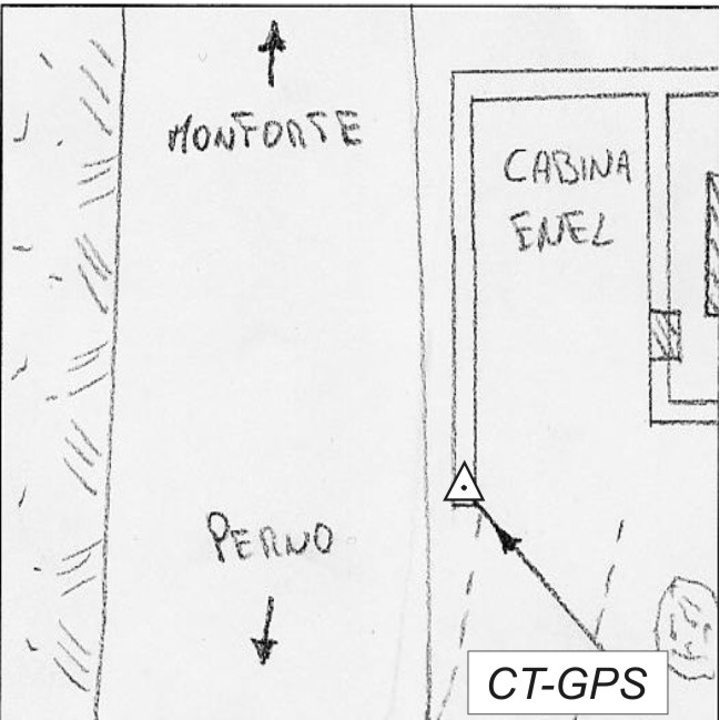 | materializzazione | Centrino metallico infisso sulla sommità del muro di sostegno, di fronte alla cabina Enel. |