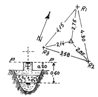 Segnale sulla sommità del monte. Centrini di fondo e di superficie, cementati in blocco di calcestruzzo sporgente dal suolo. Riferimenti:Tre croci incise
