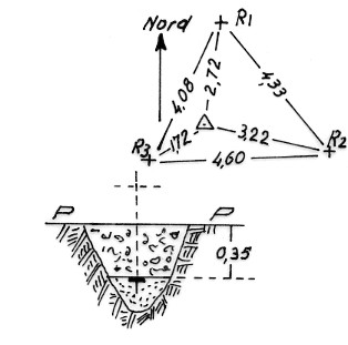 Segnale sulla sommità del monte. Centrino di fondo cementato in blocco di calcestruzzo. Riferimenti: Tre croci incise, su roccia.