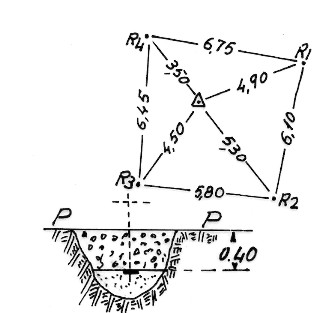Segnale sull'ampia sommità del monte. Centrino di fondo cementato in blocco di calcestruzzo. Riferimenti: n° 4 come da prospettino.