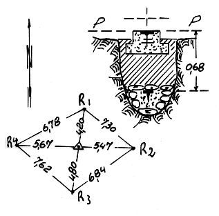 | Materializzazione | Segnale sull'altura circa 30 metri ad ovest della mulattiera. Centrino di superficie e di fondo. Riferimenti: come da pianta. |