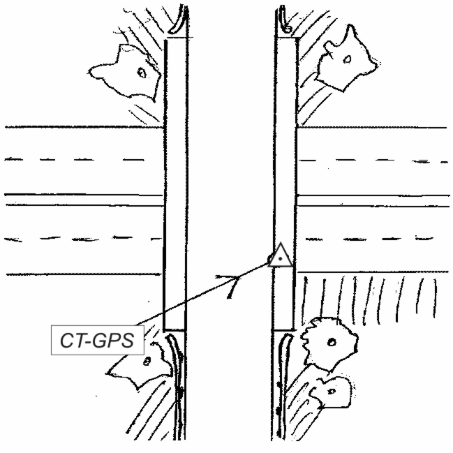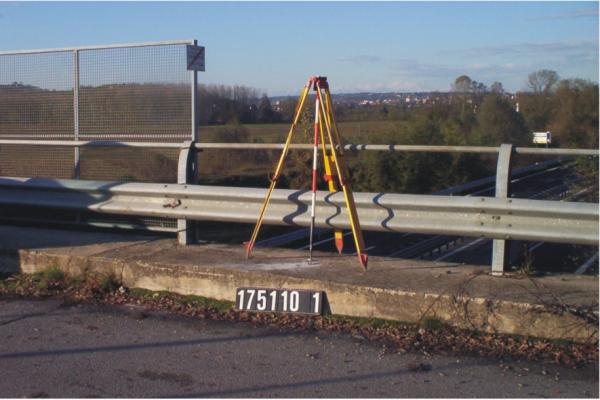 | materializzazione | Centrino metallico posto sul marciapiede di un cavalcavia autostradale. |