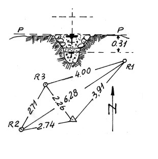 Segnale sul punto più alto del monte. Centrini di profondità e di superficie. Riferimenti: Tre centrini metallici su roccia.