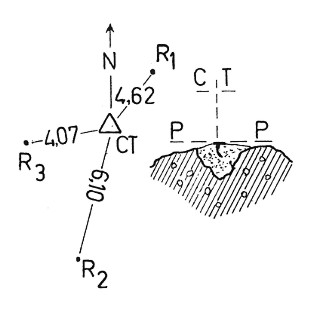 | Materializzazione | Segnale sulla cima del monte. Centrino del tipo di fondo a livello del suolo. Riferimenti: R1, R2, R3 centrini metallici |