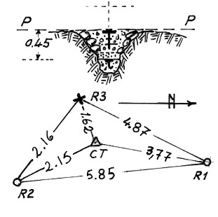 | Materializzazione | Segnale sulla parte più elevata del monte. Centrino di profondità cementato su pietra e centrino di superficie cementato in blocco di calcestruzzo a livello del suolo. Riferimenti: due centrini metallici (R1, R2) ed una croce incisa su roccia e verniciata con minio (R3). |