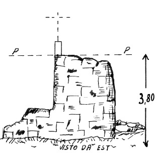 Segnale, costituito da pilastrino, sopra il nuraghe a nord-ovest di Tertenia. Asse geometrico dal pilastrino.