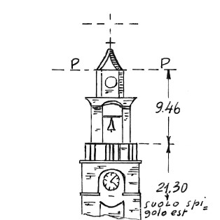 | Materializzazione | Campanile della chiesa parrocchiale. Asse geometrico del campanile. |