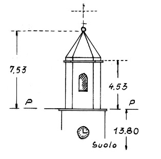 Campanile della chiesa parrocchiale. Asse geometrico del campanile.