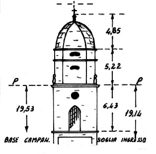 | Materializzazione | Campanile della chiesa parrocchiale. Asse geometrico del campanile. |