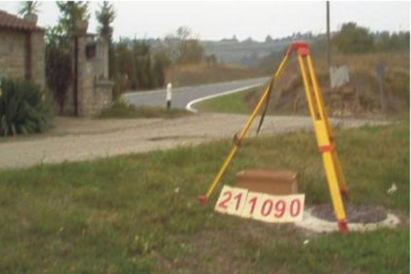 | materializzazione | Centrino metallico infisso sulla sommità del tombino dell'acquedotto (C.A.L.S.O.), lungo la strada che da Murazzano conduce a Igliano, nei pressi di un tornate. |