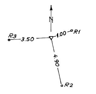 Segnale sulla sommità del nuraghe. Centrino cementato sopra un grosso macigno. Riferimenti: tre centrini cementati.