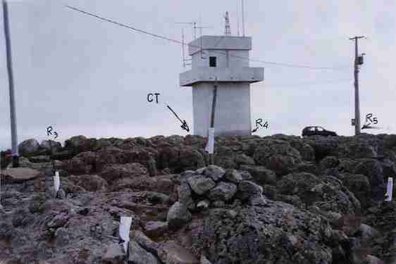 Segnale nella parte sud – ovest della sommità pianeggiante del monte. Centrino del tipo di fondo cementato sopra un roccione granitico affiorante. Riferimenti: tre croci incise su roccia.