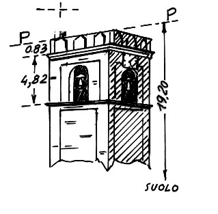 Segnale, costituito da pilastrino, sullo spigolo nord ovest alla sommità del campanile della chiesa parrocchiale. Asse geometrico del pilastrino.