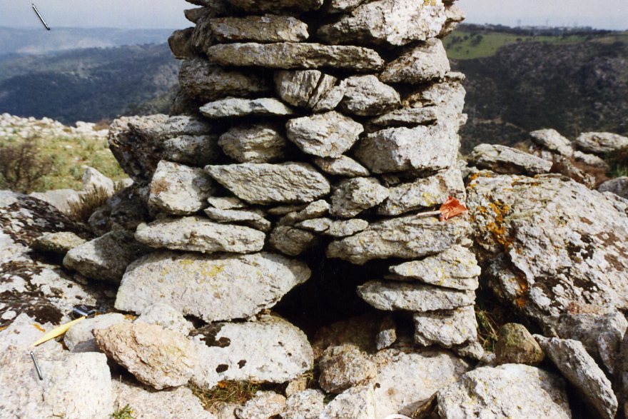 Segnale sulla cresta sassosa di uno dei contrafforti che da monte Ixi scendono verso Nord – ovest.Riferimenti R1-R2-R3-R4,bulloncini in acciaio inox infissi su roccia.
