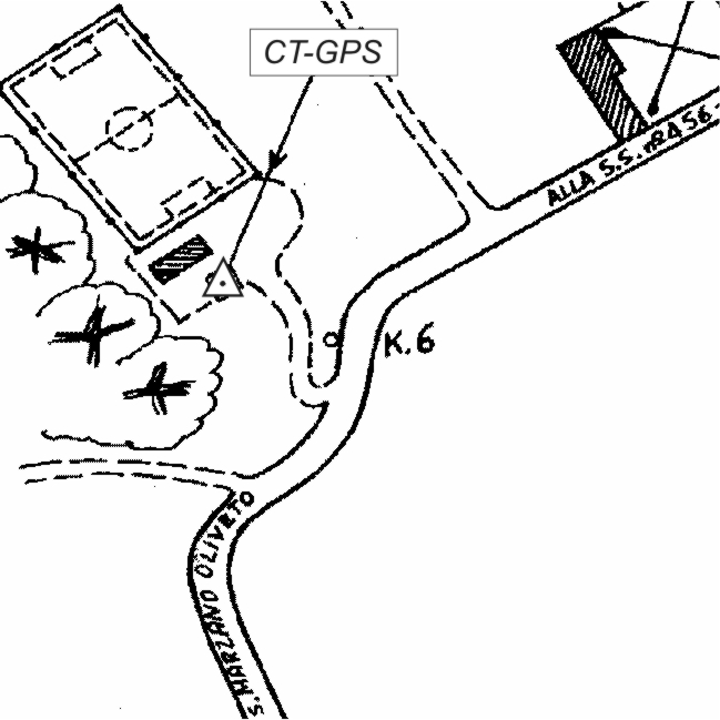 | materializzazione | Centrino inox infisso presso lo spigolo del muretto di contenimento per sabbia situato nell'area del campo sportivo di S. Marzano Oliveto , di fronte agli spogliatoi. |
