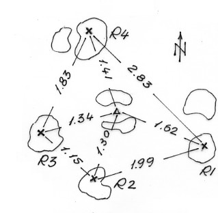 Segnale nella parte più elevata della punta omonima. Centrino di superficie Cementato su roccia. Riferimenti: quattro croci scolpite e miniate.