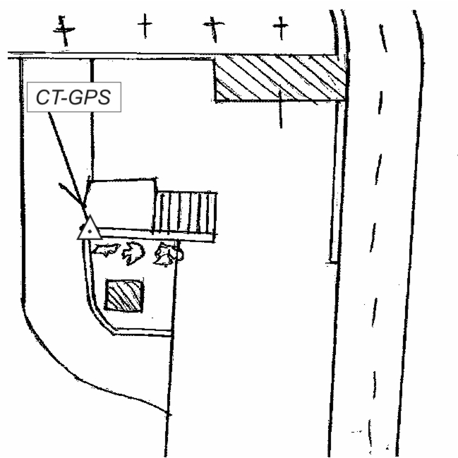 | materializzazione | Centrino metallico infisso sulla cima di un muretto a lato scale, a sinistra dell'ingresso al cimitero. |