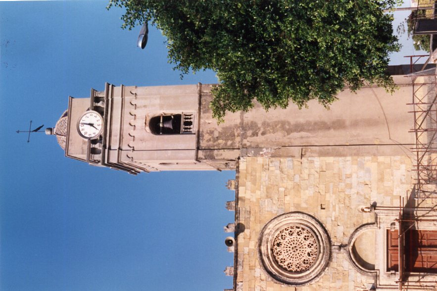 | Materializzazione | Campanile della chiesa parrocchiale. Asse geometrico del campanile materializzato dalla croce terminale. |