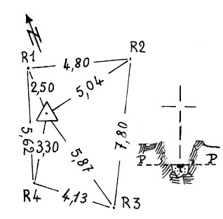 | Materializzazione | Segnale sui resti del nuraghe. Centrino di profondità cementato su roccia. Riferimenti: quattro croci incise su roccia. |
