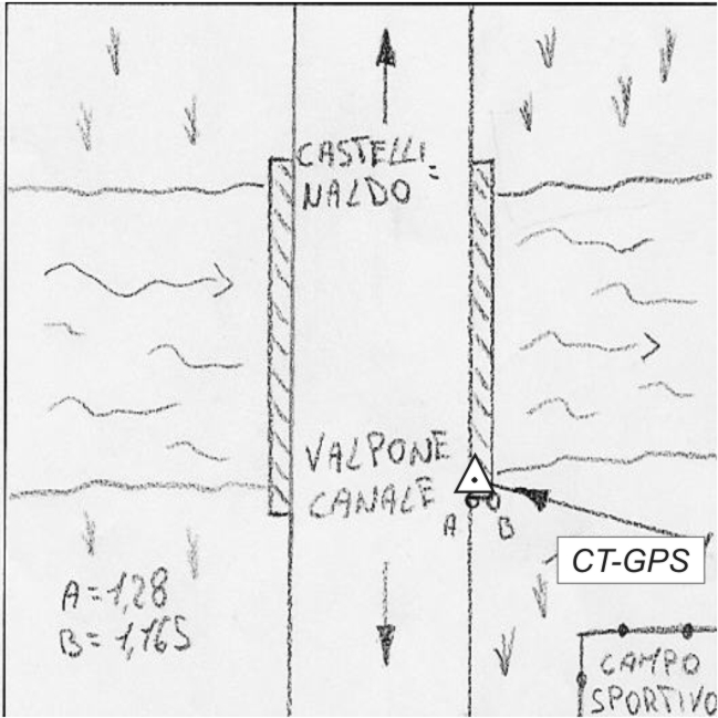 | materializzazione | Centrino metallico infisso sulla sommità del ponticello che sovrasta il torrente Borbone, sito nei pressi degli impiantisportivi della frazione di Valpone. |