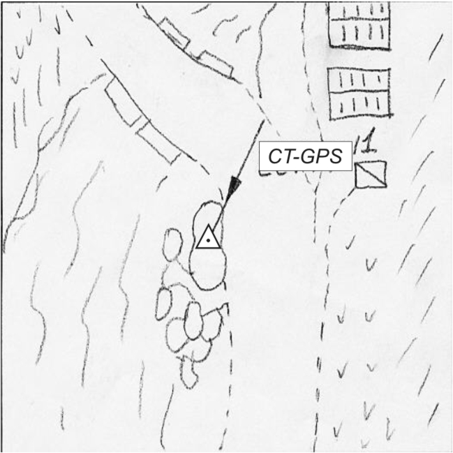 | Materializzazione | Centrino metallico catastale infisso sulla sommità di una roccia spogente lungo il Rio Sbornina, in prossimità delle Stalle della Belma Mezzana. |