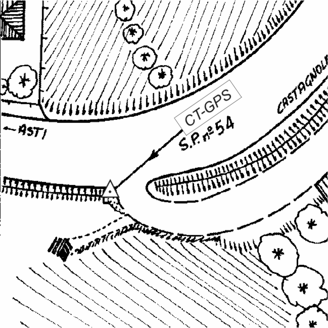 | materializzazione | Centrino inox infisso al centro del tombino di accesso alla strada privata, situato al Km 0+500 della S.P. 54. |