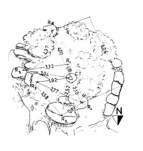 | Materializzazione | Centrino di superficie vincolato ad un blocco quadrangolare di granito, alla sommità di Monte Nai. Riferimenti:Tre croci incise (R4-R5-R6); due centrini metallici (R2-R3) ed uno spezzone di ferro R1. |