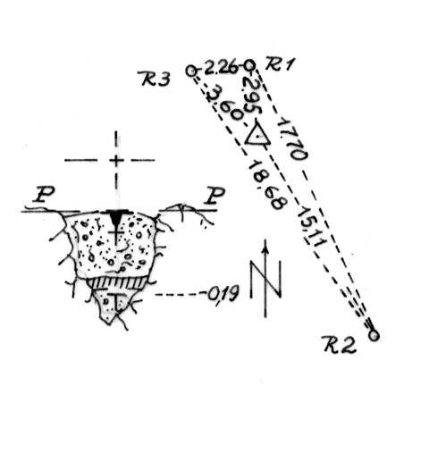 | Materializzazione | Segnale nel punto più alto della collina. Centrini di fondo e di superficie in blocco di calcestruzzo. Riferimenti: due centrini di riferimento IGM (R1, R3) ed un centrino EIRA (R2). |