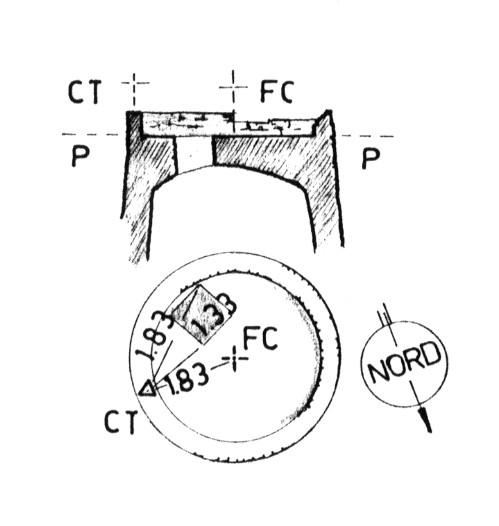 | Materializzazione | Sulla cima del Monte Ferru. Centrino metallico di superficie cementato sul parapetto a coronamento della sommità dell'antica torre spagnola, posta sulla sommità del monte. Centrino metallico dell'Istituto Idrografico Marina cementato al centro della soletta di copertura della torre, materializzante il fuori centro. FC=DN=+0.50, DE=-1.76 |