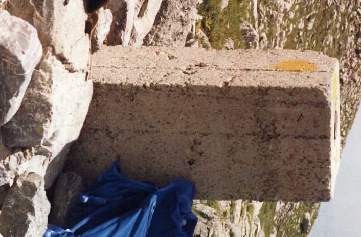 | Materializzazione | Segnale sulla cima del monte. Pilastrino in calcestruzzo con centrini alla sommità e alla base coassiali. Riferimenti:tre centrini metallici e tre croci incise su roccia. |