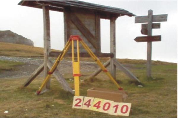 | Materializzazione | Centrino metallico infisso sul basamento della bacheca posta in località "Colle Lago dei Signori", nei pressi del confine Italia-Francia. |