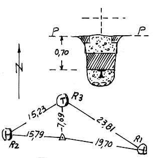 Segnale sulla timpa a circa dieci metri ad est della mulattiera che corre sulla cresta. Centrino di fondo. Riferimenti: come da pianta.