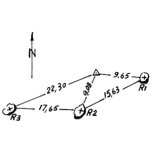 | Materializzazione | Segnale sulla parte più alta del poggio. Centrino di superficie in vetro. Riferimenti: tre croci su roccie affioranti. |