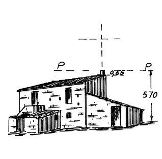 Segnale allo spigolo nord-ovest della sommità del tetto della masseria in contrada Lacque. Pilastrino in cemento. Asse geometrico del pilatrino.
