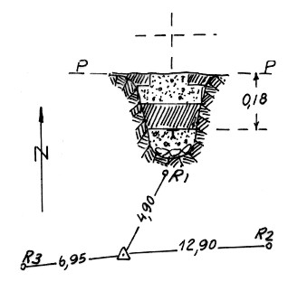 Segnale sulla costa che sovrasta a nord-ovest Cerchiara. Centrino di fondo: Riferimenti tre rocce affioranti.