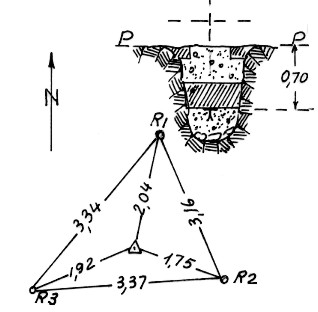 | Materializzazione | Segnale sopra un poggio prativo, circondato da bosco vicino al bivio fra mulattiere. Centrino di superficie. Riferimenti: come da pianta. |