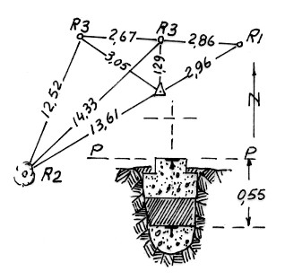 | Materializzazione | Segnale sul ciglio nord di un campo immediatamente sopra una fornace, situata all'incrocio della statale con una campestre. Centrino di superficie e di fondo di vetro. Riferimenti: come da pianta. |