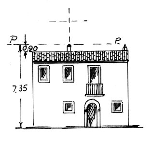 Segnale sul tetto della casa. Pilastrino imbiancato. Asse geometrico del pilastrino.