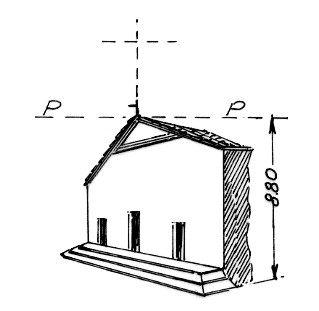 Croce bianca sul colmo tetto in corrispondenza del centro della facciata. E' stato cementato un centrino di fondo sulla soglia d'ingresso principale.