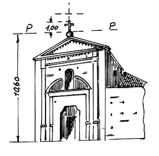 Croce sopra una sfera sul frontone della facciata della chiesa del Carmine. Asse geometrico della croce.