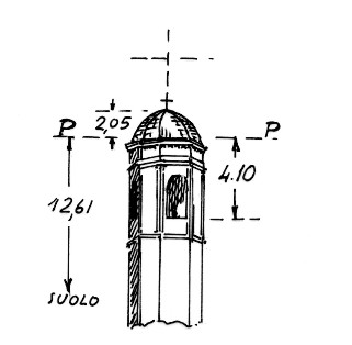 Campanile della chiesa di San Basilio Magno. Asse geometrico del campanile.