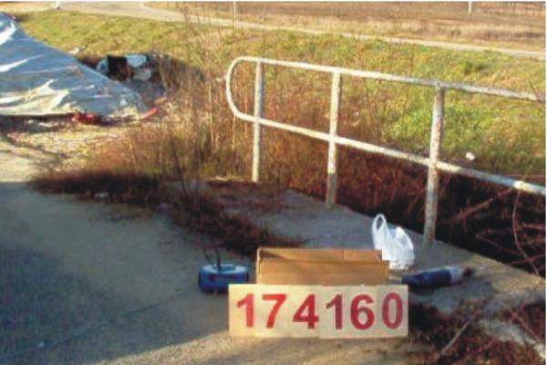 | materializzazione | Centrino metallico infisso sulla sommità del muretto di un ponticello lungp la strada che collega Montà con Madonna della Grazie. |
